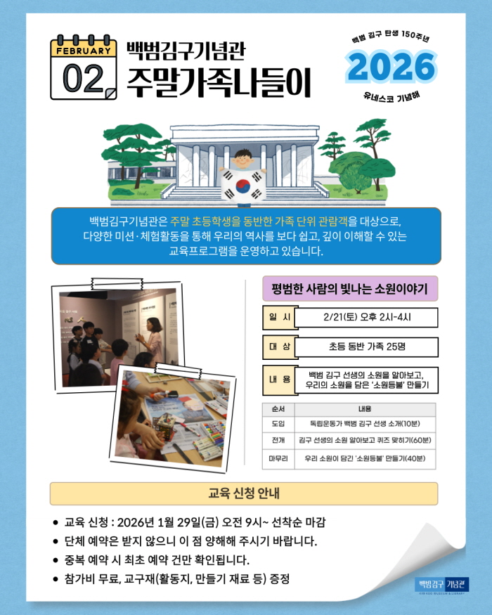 [±³À° ½Åû Àü ²À! ÀоîÁÖ¼¼¿ä] - ÃÊµî ´ë»ó ±³À°(Çкθ𠵿¹Ý ±³À°)ÀÔ´Ï´Ù. - ±³À° ½Åû ±â°£Àº 1/30(±Ý) ¿ÀÀü 9½ÃºÎÅÍ ¼±Âø¼ø ¸¶°¨µË´Ï´Ù. - Âü¿©°¡Á·µéÀº ÇÁ·Î±×·¥ ½Ã°£ 10ºÐÀü±îÁö ±â³ä°ü ¾È³»º¸Á¶µ¥½ºÅ©¿¡ µµÂøÇØÁֽñ⠹ٶø´Ï´Ù. - ¿¹¾à½Ã, ±³À°¿¡ Âü¿©ÇÏ´Â ¾î¸°ÀÌ ¸íÂû Á¦ÀÛÀ» À§ÇØ Âü¿©ÇÏ´Â ¾î¸°ÀÌ À̸§À» Àû¾îÁÖ¼¼¿ä. - ¢Ï ¹®ÀÇ»çÇ× : 02-799-3434 ¡Ø ºñȸ¿ø ¿¹¾à °¡´É(ȸ¿ø°¡ÀÔ ±â´É ¾øÀ½)